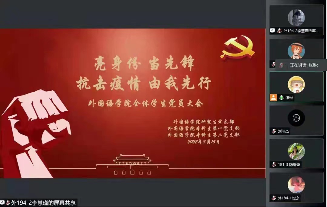 各学生党支部共同开展了题为“亮身份,当先锋,抗击疫情,由我先行”的线上党员大会,全体学生党员共同学习了成人色情