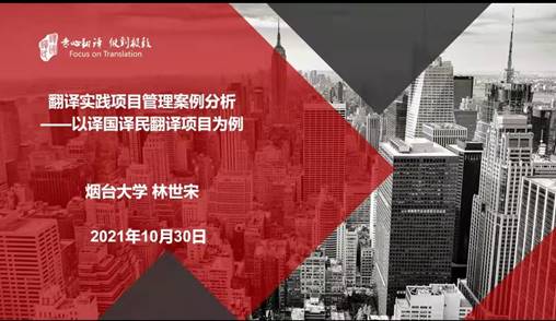 邀请上海译国译民翻译服务有限公司董事长林世宋于10月30日晚进行题为《翻译实践项目管理案例分析——以译国译民翻译项目为例》的线上讲座。