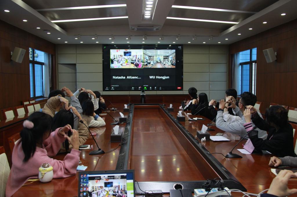 学生代表邵子川、刘楚以及波列斯克国立大学的两名学生代表分别讲述了自己的大学生活,藉此加深对双方校园文化和生活的了解,促进两国同龄人之间的友好交流,展现了双方学子良好的精神风貌和学术水平。最后,于建波博士就此次会议进行了简洁总述,提出了双方继续友好往来、加深学术交流的希冀,欢迎外国友人将来有机会到中国一游。
