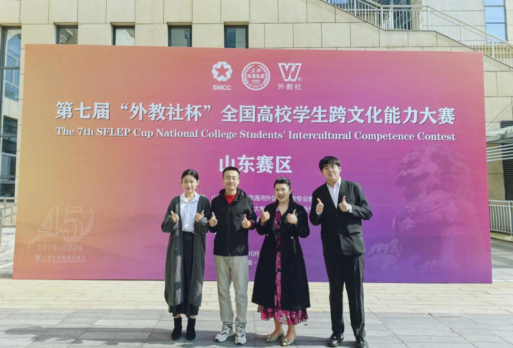 积极响应本次赛事,由陈志新老师亲自指导并带队前往青岛参加山东赛区比赛。比赛过程中,成员们凭借扎实的语言基础、敏锐的跨文化意识以及良好的团队合作精神,赢得了评委的认可。