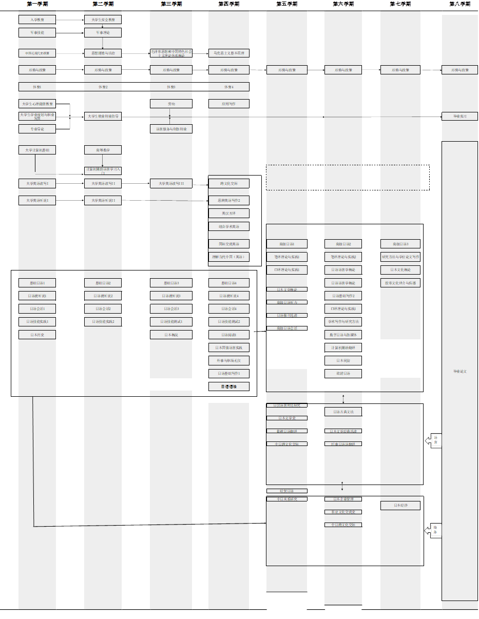 培养目标3:能力方面,具备日语运用能力、翻译能力、文学赏析能力、跨文化交际能力、思辨能力、创新能力、信息技术应用能力、自主学习能力和实践能力,具备终身学习的意识与能力。